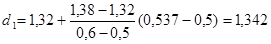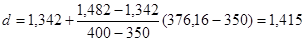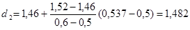 5. Для определения расхода заполнителей устанавливаем коэффициент раздвижки зерен щебня растворной составляющей d интерполяцией: