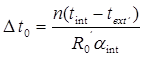 Расчетный температурный перепад Dt0 , °С, между температурой внутреннего воздуха и температурой внутренней поверхности ограждающей конструкции не должен превышать нормируемых величин Dtn , °С, установленных в СНиП 23-02-2003, и определяется по формуле: