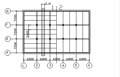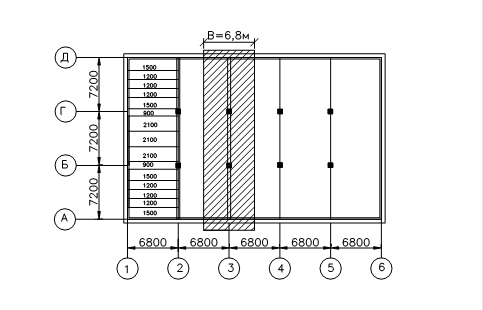 L1 ´L2 - шаг колонн - 5,2 ´ 7,2 м.