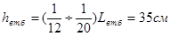 Назначаем высоту кратную 5 см: hтр =0,45м.