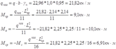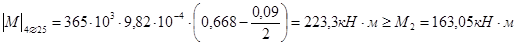 2. На максимальный положительный изгибающий момент в среднем пролете М2