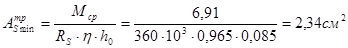2) Определение минимального поперечного сечения арматуры