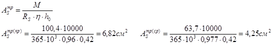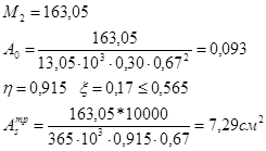 3) Определяем требуемую площадь арматуры: