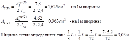 Арматура в сетке С2 определяется, как разница максимально-требуемой арматурой и той поперечной арматурой, которую подобрали в сетке С1. Для сетки С2 Аs тр min = Аs тр max - Аs (попер. ар-ры сетки С1) =3,13-2,515=0,615 см2 .