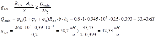 19) Определяем поперечную перерезывающую силу, воспринимаемую поперечной арматурой![]()