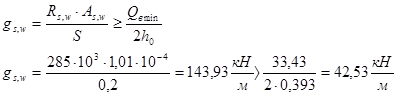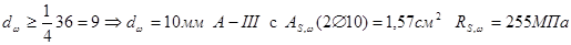 Условие выполняется Þ поставленной поперечной арматуры достаточно. Окончательно принимаем A- III c As , w ( 2Æ10) =1,57см2 с шагом 200 мм.