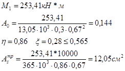 Расчет на прочность ригеля по нормальному сечению