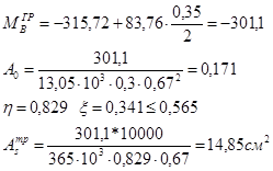 В дальнейших расчетах будем использовать: В = 0,30м , h= 0,70м.
