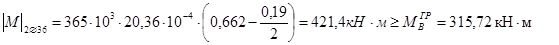 2) Нижняя арматура в первом пролете в полном объеме до торцов ригелей не доходит. Разрешается оборвать не более 50 % арматурных стержней. Определяем несущую способность нижней арматуры, дошедшей до торца элемента.