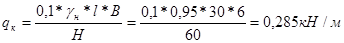 q = gf *gн * qo * Cx * Kп * B = 1,4 *0,95* 0,30 * 0,8 * 0,678 * 6 = 1,3 кН/м