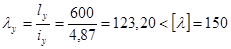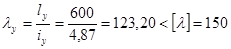 Длины швов принимаем минимальными 5 см, так как усилие в верхнем поясе равно 0.