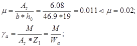 Полагая, что Z1 =0.9h0 ; требуемая площадь сечения указанной арматуры составляет