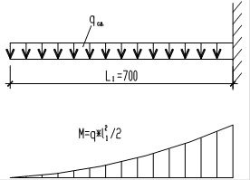 M=q*l1 2 /2=7200*0.72 /2=1770Н*м