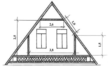 · окна – четыре (по два на каждом фронтоне), высотой 1,6 м и шириной 1,0 м с двойным остеклением,