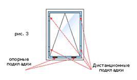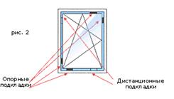 А) Прокладки под стеклопакет на несущие фальцевые вкладыши установить плотно, в натяг, чтобы створка со стеклопакетом образовывала жесткий треугольник (рис.1). Для этой цели используют специальную пластмассовую лопаточку. Если этого не выполнить, створка провиснет в первые же дни.