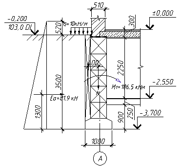 Горизонтальне навантаження в даному випадку викликається тільки активним тиском грунту і знаходиться за формулою