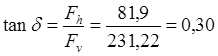 Коефіцієнт внутрішнього тертя грунту φI = 16°, δ =17