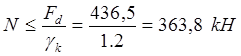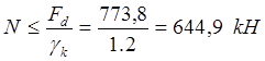 F = N = 198,52 кН < 0,9 · 263,6 /1,15 =206,3 кН.