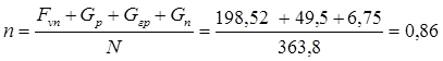 ξγ = (1-0,25)/ η = (1 – 0,25)/2,1 = 0,36,