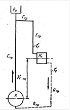 Принципиальная схема системы водяного отопления с естественной циркуляцией приведена на рис., где условно показан лишь один нагревательный прибор (Н. п) , соединенный с водогрейным котлом (К ) горячим и обратным трубопроводами (Г. тр . и О. тр ).