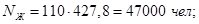 Расчетное количество жителей в населенном пункте NЖ , человек, определяем
