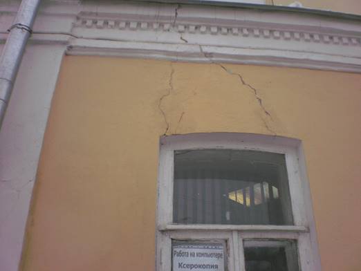 Рис.2 Трещины в штукатурке цоколя