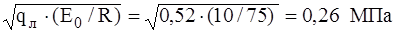 где qл = Q/B=(9,81∙8)/150=0,52 кН/см – линейное давление, отнесенное к ширине катка В=150 см;
