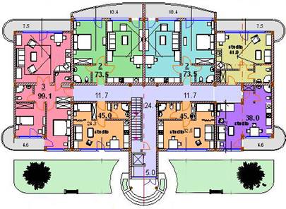 - студії площею від 38.0 до 45.0 м2 – 18 квартир;