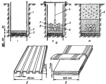 1. Кладуть шар цементного розчину (2 - 3 см) складу 1:2, вирівнюють, желєзнять, сушать. Стелять один шар толі або руберойду.