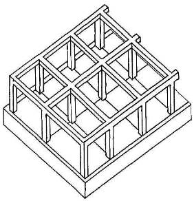 В каркасных зданиях вся нагрузка передается на каркас, то есть систему связанных между собой вертикальных элементов (колонн) и горизонтальных (прогонов и ригелей).