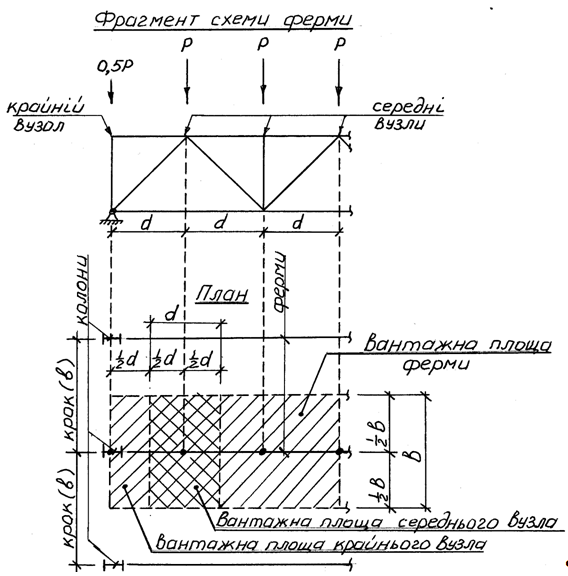 Рис.2.1 До визначення вантажних площ ферм і вузлів