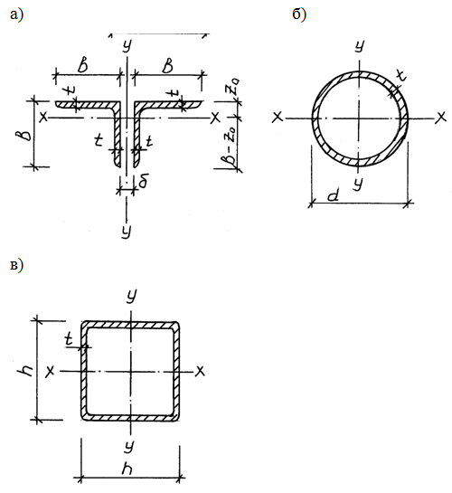 1) за сортаментом знайти відстань від центру ваги перерізу до обушка zo (див. рис. 4.1а) для усіх стержнів, що сходяться у вузлі