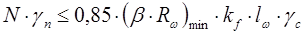 де 0,85 – коефіцієнт умов роботи шва, що враховує нерівномірність розподілення напружень за довжиною шва.