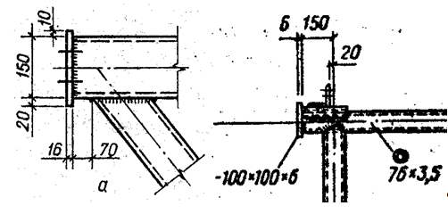 Рис.5.3 Схеми вузлів ферми з круглих труб (а) і ГЗП (б)