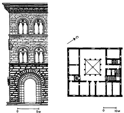 Рис. 2. Палаццо Медичи-Риккарди во Флоренции. 1452 г. Фрагмент фасада, план.