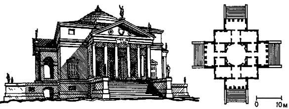 Рис. 9. Вилла Ротонда близ Виченцы. 1567—1591 гг. Общий вид, план