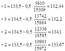 «красная» отметка = (133,44+133,1+134,2+133,67) / 4 =133,6025