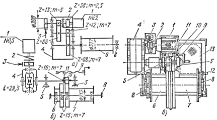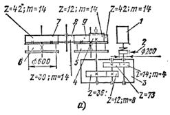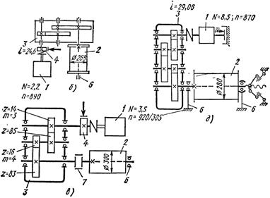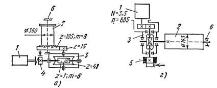 На рис.5 а изображена кинематическая схема механизма передвижения, применяемого для кранов серии КБ с грузовым моментом до 200 т∙м (КБ-60, КБ-100, КБ-160.2,
