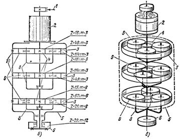 а – разрез редуктора; б – кинематическая схема;