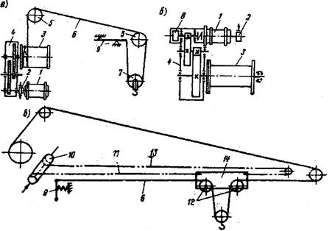 Рис. 14. Схемы грузоподъемных механизмов башенного крана