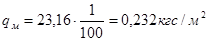 Временная нормативная нагрузка (снеговая) для III снегового района составляет sn =126 кгc/м2 .Определяем собственную массу несущих конструкций: