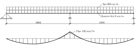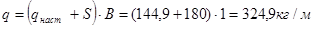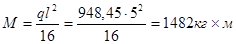 Полная постоянная нагрузка составляет q1 n + q2 n =10+6,3=16,3 кгc/м2 .
