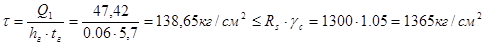 G=N/A=5,2×10-3 /(4×10-2 )=0,13 МПа < Rcм =10МПа