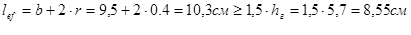 Принимаем опорный лист с размерами поперечного сечения 13,5×1см (А=13,5 см2 ). Опорный лист анкеруется в тело фундамента на величину 400мм с отгибом листа.