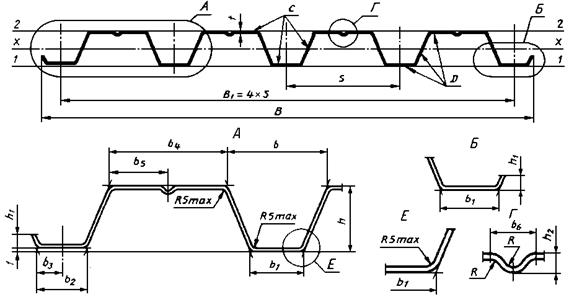 Согласно ГОСТ 24045-94 по табличным значениям принимаем профнастил Н57-750-0,6 со следующими характеристиками: А = 6,6 см 2
