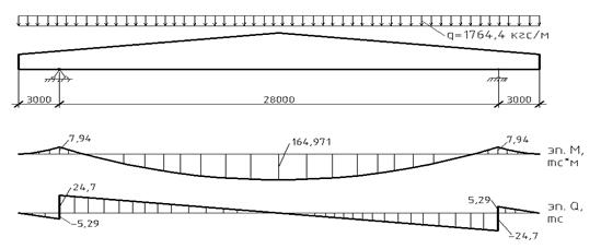 Клееная двускатная балка. Пролет 6…24м, k см = 4…5, k м = 0…1. Для пролета L=28м принимаем k см = 5, k м =1.