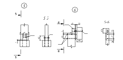 Рис.12. Узлы сопряжения стойки фахверка с фундаментом и с балкой покрытия.