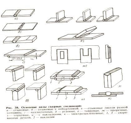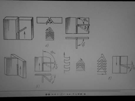 а - стыковые швы со скосом кромок, б - угловые швы, в - сварка в направлении сверху вниз.