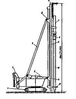 Рис 3.4 Копрова установка СП-49 з навісним бурильним обладнанням і зі сваєбійним трубчатим дизельним молотом.