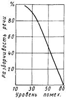Якщо рівень перешкод складає 20 дб, то такий шум не заважає розбірливості мови. З підвищенням рівня перешкод розбірливість мови знижується. Розбірливість, що складає 75% від вихідної (що відповідає рівню перешкод в 40 дб), вважається задовільною. Починаючи з 45 дб маскуючої дії шуму, відбувається помітне ослаблення розбірливості мови. При рівні перешкод до 70 дб і вище мова стає нерозбірливою.